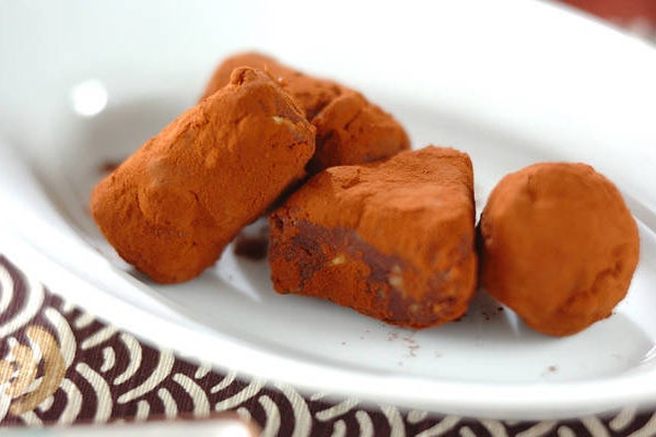 2、お好みの大きさに丸め、冷蔵庫で冷やす。ココアパウダーをまぶし、器に盛る。