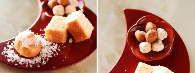 そして、三日月型のプレート上部に盛り付けられているのは「カレー風味のノワゼット」(写真上・右)。キャラメリゼの具合で香ばしさが異なる2種の味を交互に楽しめる。
