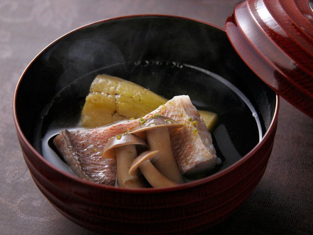 しっかりと火入れされた甘鯛は、炭の上でたっぷりの脂を蓄えたのだろう。箸を通せば容易にほどける身から、きめ細やかな脂の粒が溢れ出す。すするたびに濃厚に甘く変化していくだしに、焼きナスの苦み、丹波シメジの力強い香りが加わって、口中にうまみの三重奏が響き渡る。