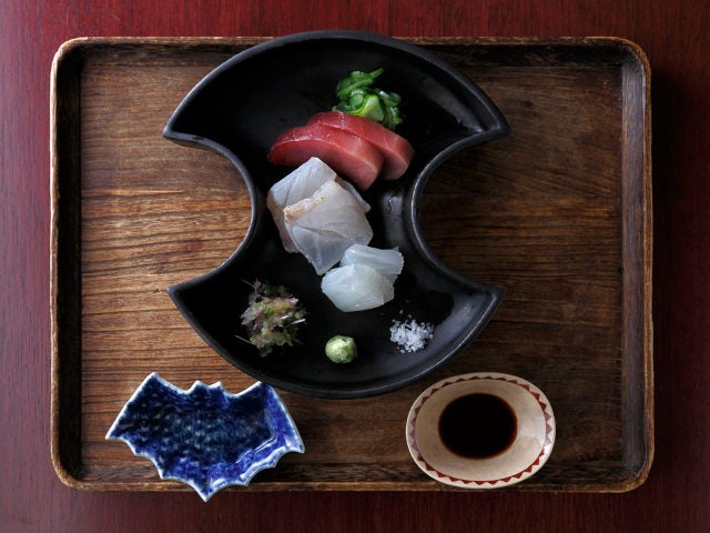 魚の種類も切り身の数も奇数で用意し、奥を高く手前が低くなるように盛り、食べる順番は手前の左側から時計回り。白身魚からはじまり、貝類、赤身などの濃い味付けは最後にいただくのが基本という。