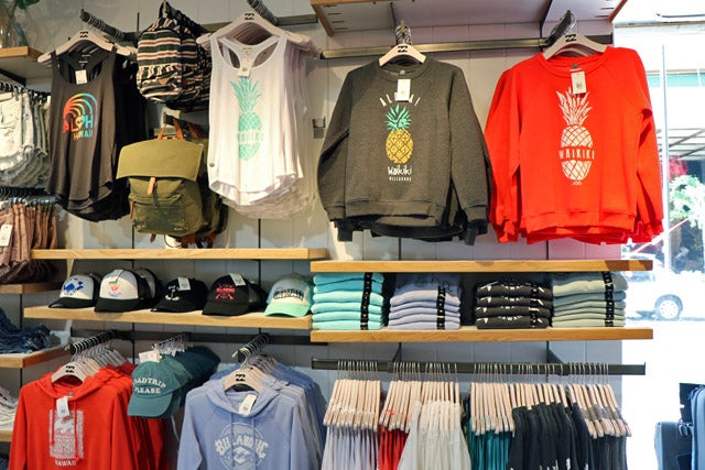 ハワイ限定商品が充実しているのもビラボンの魅力。フード付きのスウェットやタンクトップをはじめ、デザインもポップなものからシンプルなものまで多彩なバリエーションがそろいます。