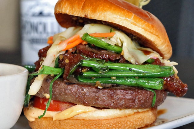 和牛のパティとモンゴリアンプルコギを重ねた、アジアンテイストの「モンゴリアン・プルコギバーガー」は、肉on肉の豪快メニュー。