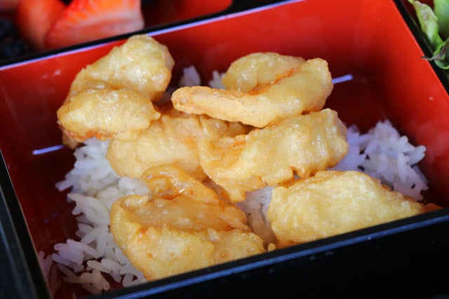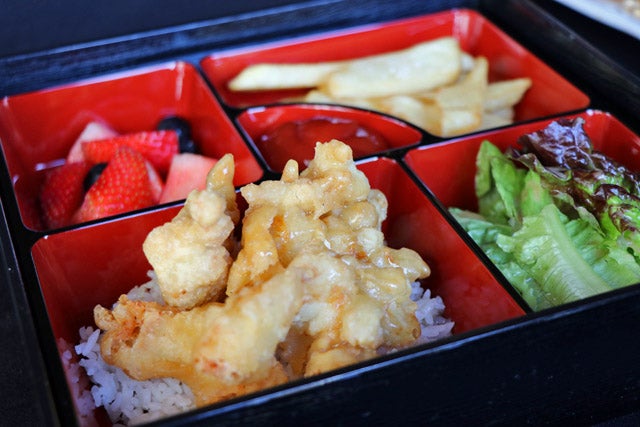 そして、こちらも新たに加わった「キッズ弁当」。ご飯、クリスピーハニーチキン、フレンチフライ、サラダとフルーツがついて12ドルと、けっこうリーズナブル。ここだけの話ですが、大人でもお願いすればオーダーできるそうですよ。