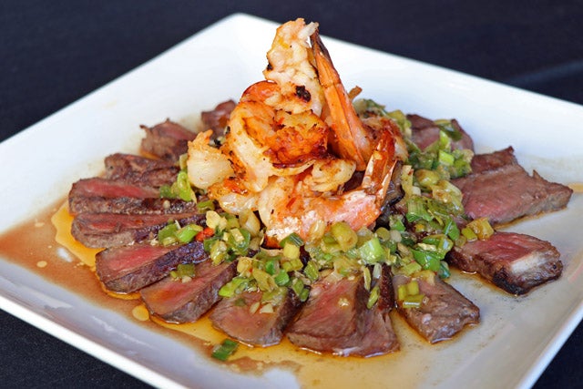 新たに登場した「アジアン・チュリ・ステーキ&プラウン」はお肉とシーフードの両方を一度に楽しめるサーフ&ターフ料理。ステーキはあらかじめカットしてあるから、みんなでシェアするアペタイザーとしてもおすすめ。