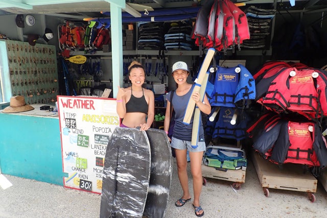 ランチの後はカイルアビーチに戻ってのんびりすることにしました。シュノーケルやボディーボード、ビーチマットなどのレンタルもツアーに含まれているので、好きな道具をピックして出発~。