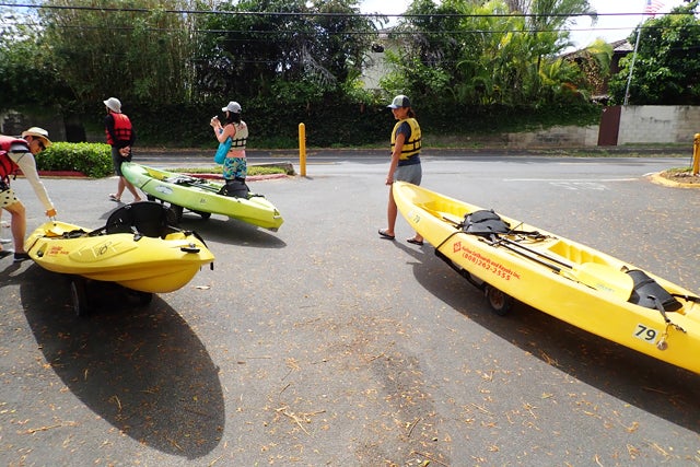 再びカヤックを台車にのせて、カイルアビーチアドベンチャーズに帰着したのが12時30分ごろ。専用シャワーで海水を洗い流したら、集合時間の午後3時まで自由行動を楽しみましょう。