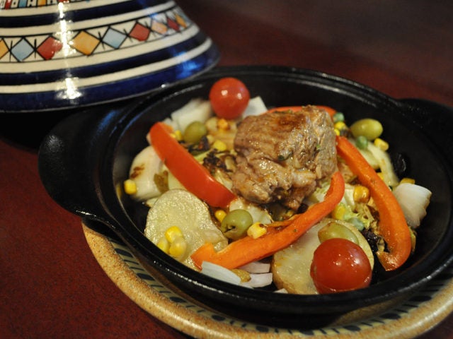 名物料理の「モロッコ風スパイス ラム蒸し鍋(タジン)」に使用のタジン鍋は現地から調達