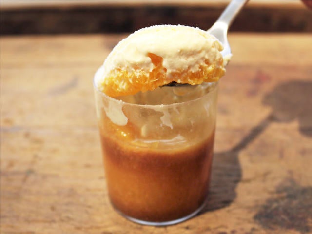 対して、アルコールを使っていない「サバラン オランジュ」(写真下)は、果実の爽やかさをダイレクトに堪能できる一品。