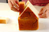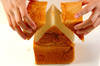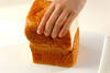 ・<食パンの家>を作る。食パンは長さを半分に切って縦に重ね、重ねた上の食パンを屋根の形に切り落とす。残った食パンで煙突を作り、つま楊枝を使って屋根に刺す。