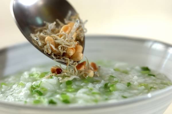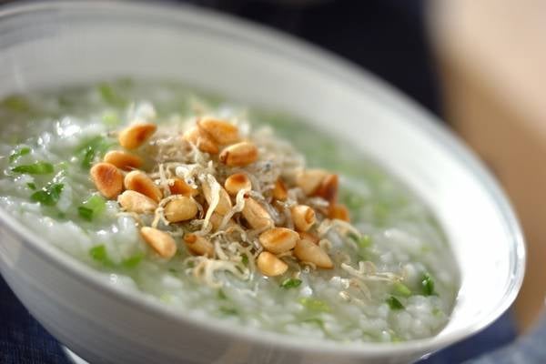 おかゆの上に、作ったカリカリジャコをトッピングして完成です。塩気のある風味とカリッとした食感がアクセントになり、サラサラといただけますよ。