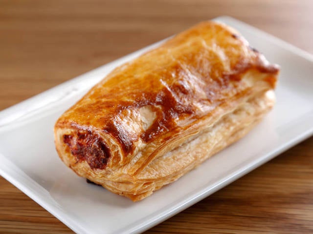 サクサク軽い食感のパイ生地で、肉屋さんに特注した無添加ソーセージを包んだ「ソーセージロール(Sausage Roll)」(写真上)だ。こちらのパンは、腸詰せずにソーセージの“中身”だけで作った“ソーセージ・ミート”を使用しているため、日本のソーセージパンとはひと味違った食感を楽しめる。