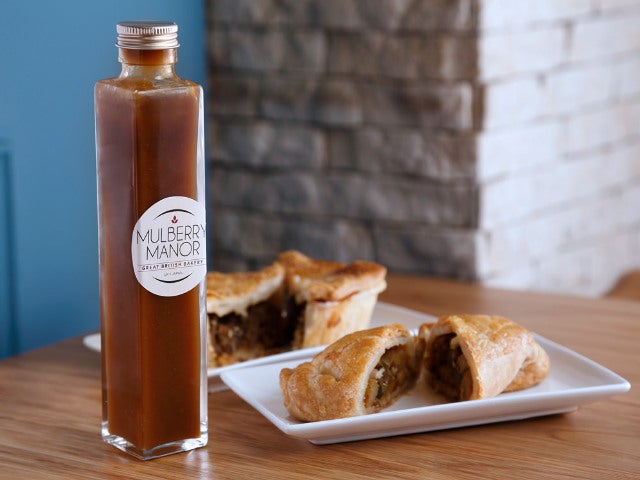 コーニッシュ・パスティと同じく「ブラウンソース」と相性のいいおすすめメニューが、「ステーキ&キドニーパイ(Steak & Kidney Pie)」(写真上・下)。こちらは、ステーキの塊肉とキドニー(腎臓)をグレービーソースで煮込んでパイ生地で包んだもの。