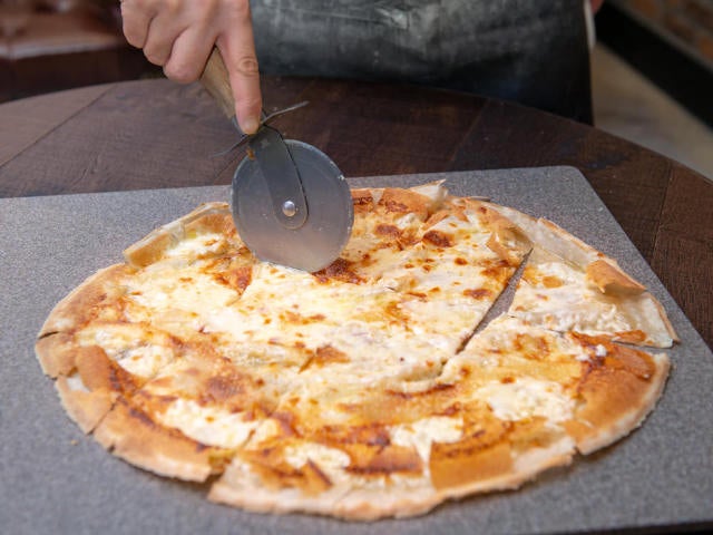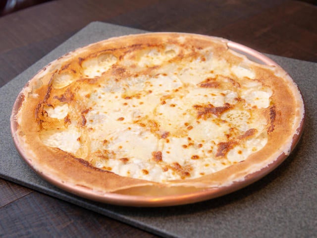 できたて、アツアツをぜひ頬張りたい。カリカリサクサクの薄い生地はかみしめるとじわっと小麦の甘さがしみてくる。チーズはコクがありながらも、ほどよい酸味があるため、さっぱりとした後味。パリパリ生地ととろとろのチーズが一体となり、おいしさに手が止まらなくなる。