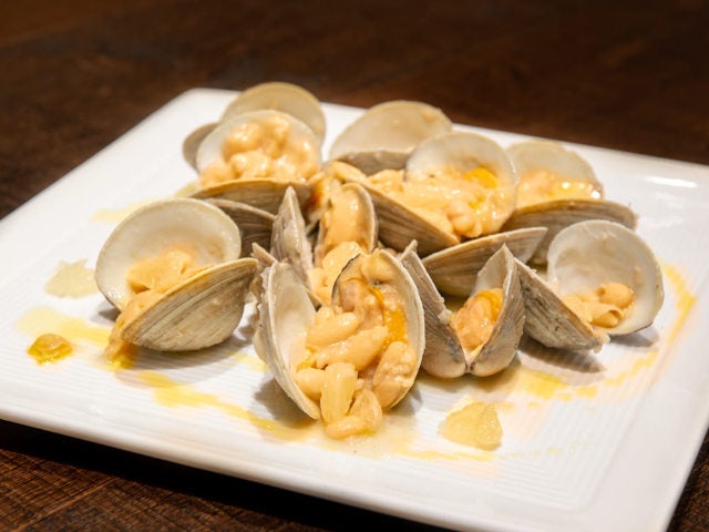 いくつか料理を紹介しよう。「ホンビノス貝と白いんげん豆」(写真上)は、ホンビノス貝の濃厚なうまみを生かした料理。貝のだし汁を吸ったホクホクの白いんげん豆がソース代わりになり、散らしたグレープフルーツの酸味が味のアクセントになっている。