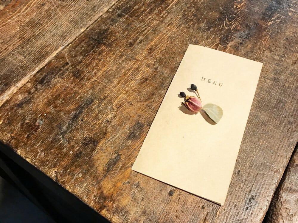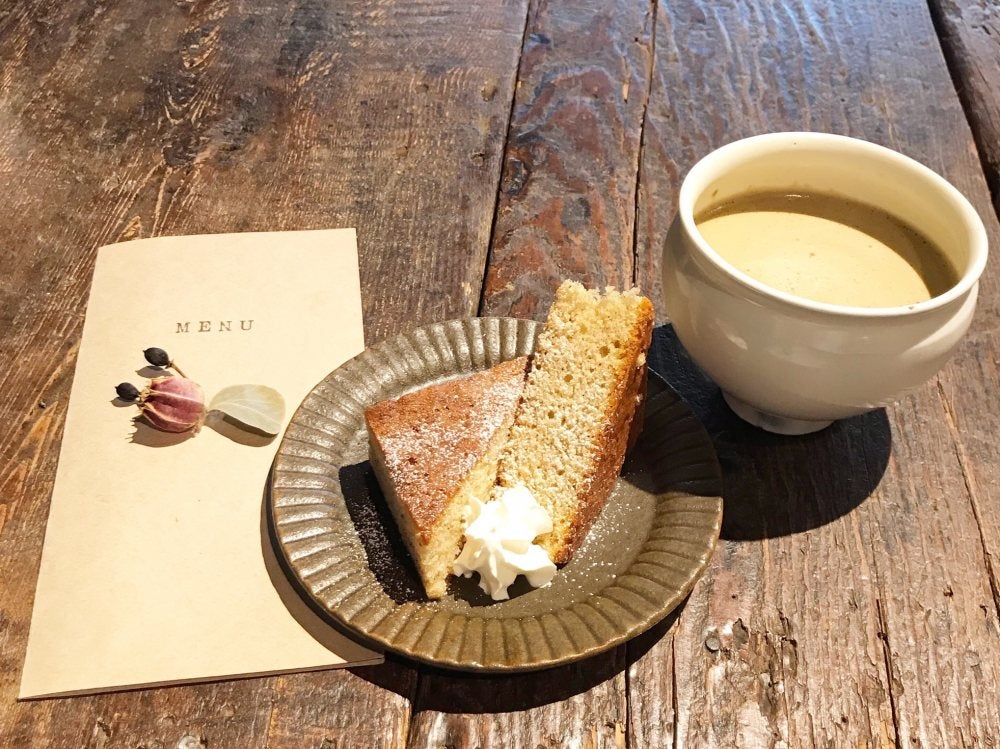 メニューにもおしゃれなドライフラワーがあしらわれています。その日によって、2種類ほどの自家製ケーキが用意されています。