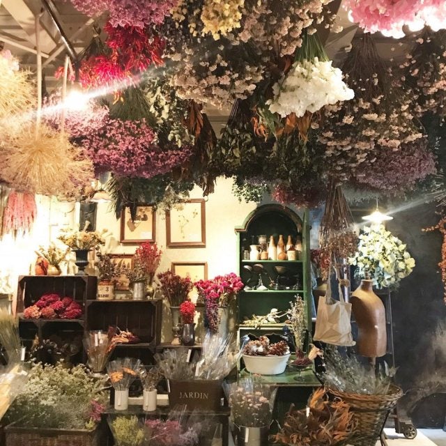 ドライフラワーに囲まれた素敵な空間