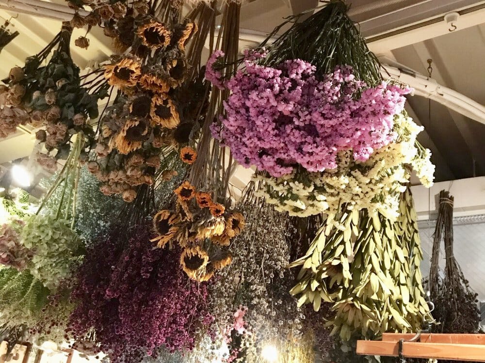 こんな風に天井からも吊るしてあって、店内でお花を乾燥させてドライフラワーを作っているのだそう。そのため店内はお花のとってもいい香りが充満!視覚からだけでなく、嗅覚からも幸せな気分にしてくれます。