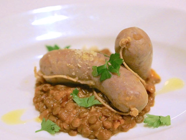 豚肉の甘い肉汁が弾けながら、サラミのような熟成感もある。紐を持ってしごくようにかじりつくとうまい。そしてローズマリーの香りがきいたレンズ豆は、コテキーノを食べて上気した気分を、落ち着かせる。コテキーノ、そしてレンズ豆。コテキーノ、そしてレンズ豆と交互に食べていくと、幸せが体の中に満ちて行く。