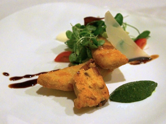 豆の甘みとハムの旨味が、遠くから静かにやってくる。しみじみとうまい。フリットを噛めば、クニャリとトリッパが身悶え、ほのかに甘い。余分ではない下味とトリッパの厚みが、精妙に計算されている。