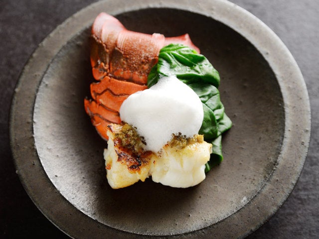 同店では、シェフの故郷・淡路島の豊かな風土が生み出す野菜、米、魚介類、牛肉をはじめ、季節に合わせておいしいと感じるものを国内外から厳選。蒸す、揚げる、茹でるなど、素材によって調理法を変えさまざまな技法を駆使している。