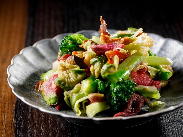 こちらは「石川県能登島 高農園のセミドライとフレッシュの野菜 ドライトマト炒め」。赤土で育てられた『高農園』の野菜は味や香りが濃く、“野菜を食べている”という実感がある。確かに野菜自体も大層おいしいのだが、菰田さんの手にかかるとそのおいしさは格段に増す。
