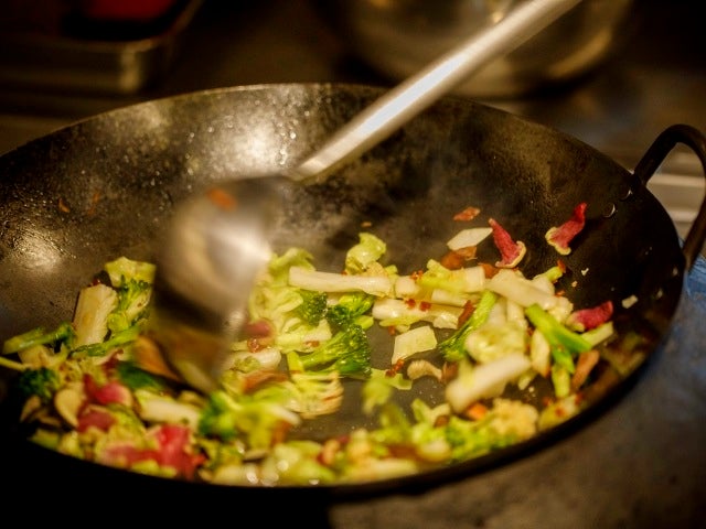 「セミドライにした野菜を一緒に炒めます」と菰田さん。そうなのだ、菰田さんは形が悪く売ることができない野菜や、くず野菜を乾燥させて調味料として使っている。セミドライにすると野菜のうまみが凝縮され、さらに濃い味になるそうだ。