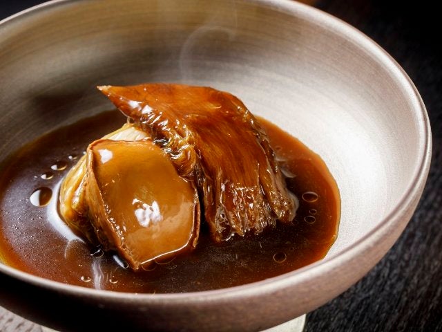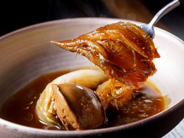 人気の一品から「毛鹿鮫(モウカザメ)フカヒレと干しアワビの煮込み 柔らか白菜添え」をいただく。フカヒレのコリっとした食感、弾力がありながらも歯切れの良いアワビのおいしさはもちろんのこと、高級食材にも勝るとも劣らないのが、とろとろにやわらかく甘みが存分にある白菜。