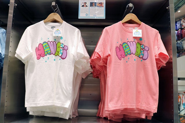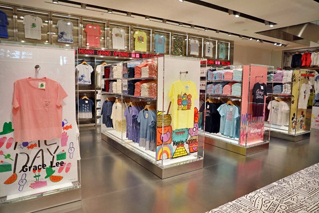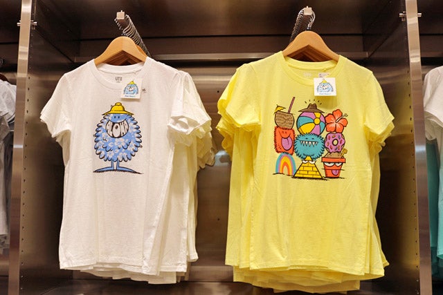 ユニクロのTシャツブランド「UT」のコーナーにはディズニーやサンリオとのコラボTシャツ、ハワイ限定Tシャツなど、バラエティ豊かなアイテムが並びます。