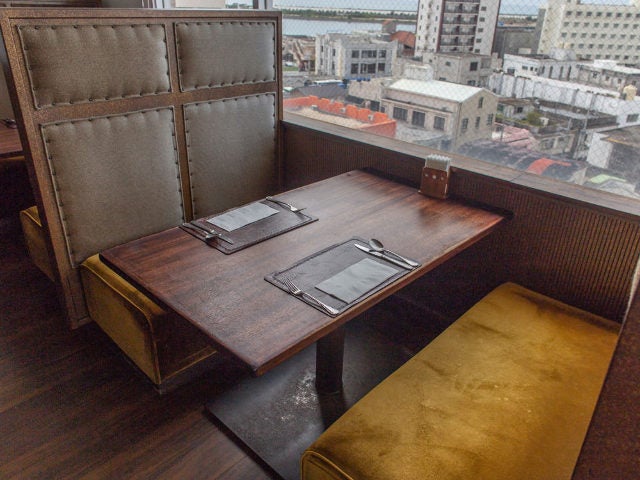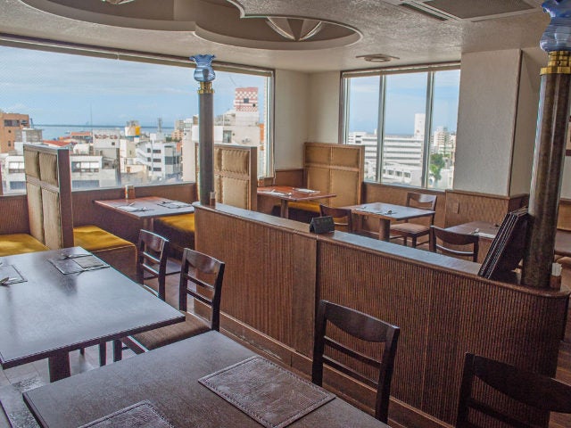 高級感あるクラシックな店内に、奥様や息子さんの丁寧な接客、そして石垣を一望できるこのパノラマ。旅行客だけでなく、地元の人たちに愛されるのも納得できる。