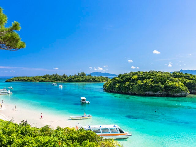 石垣島のフェリーターミナルは、八重山諸島全ての有人島渡航が可能で、30分もしないうちにこんな絶景が広がる離島へもアクセスすることができる。