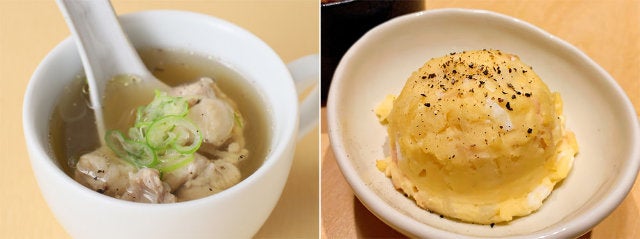 ポテトサラダ(同・右)は、口あたりのいいジャガイモの風味を存分に楽しめる一皿。