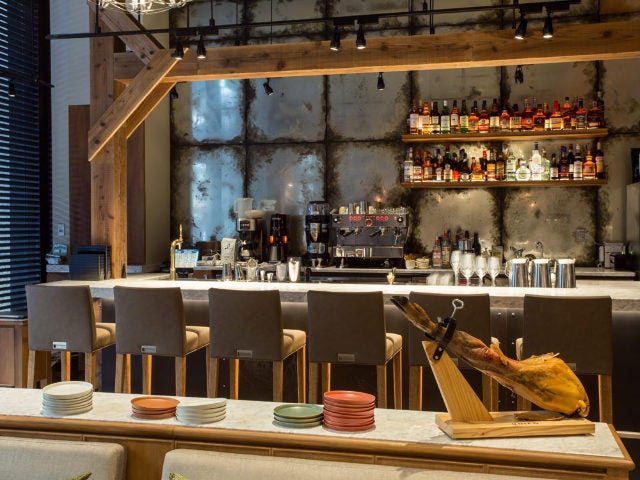 入口近くに設えたバーカウンターは、一人でも気軽に立ち寄りやすい雰囲気で、待ち合わせにもいいだろう。界隈のワーカーたちが、仕事帰りにふらりと立ち寄って、ワインとタパスでくつろぐ姿も。映画のワンシーンのような、画になるスペースだ。
