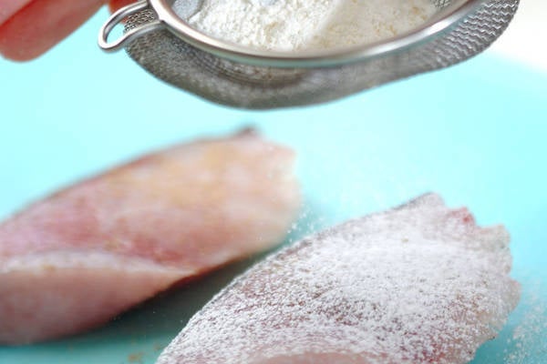 ・ブリに塩コショウを振り、薄く小麦粉をまぶす。