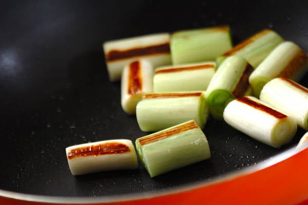 1、フライパンにサラダ油小さじ1をひき、中火で白ネギを炒める。器に盛り、塩コショウを振る。