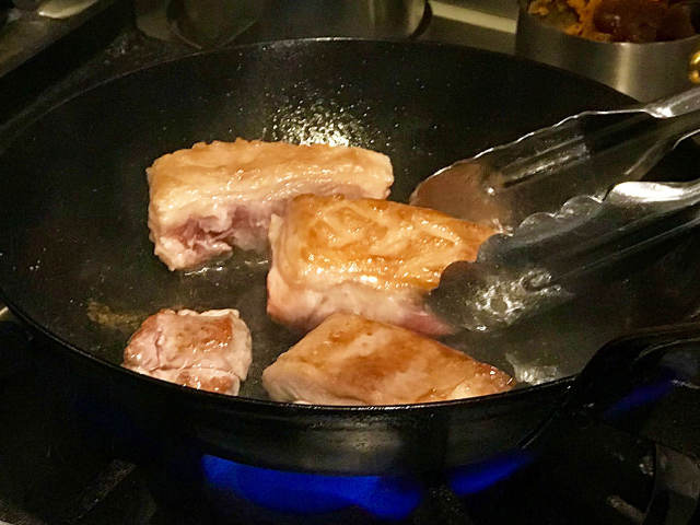 そのエキスを具材に流し入れると、ジュワーっと食欲をそそる音と香りが湧きたつ。