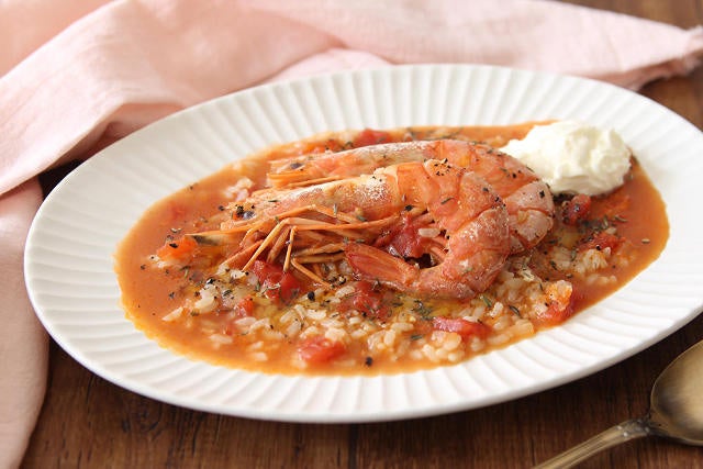 エビの濃厚なだしとトマトの酸味が相性抜群「エビとトマトのカルドソ」