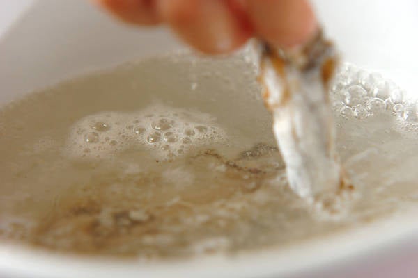 1、生カキはザルに入れて振り洗いし、キッチンペーパーにのせて水気をきる。塩コショウをして小麦粉を薄くつけ、熱湯でサッとゆでてザルに上げる。
