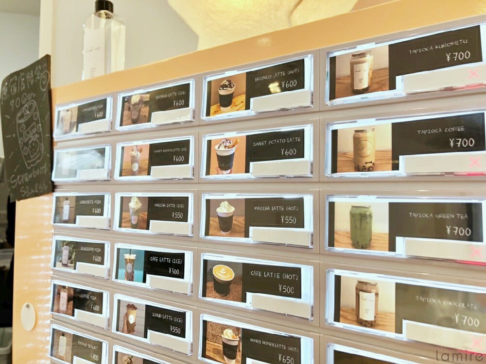 ラテやタピオカドリンクなど数十種類のドリンクがずらり。どれもおいしそうで悩んでしまいます。インスタグラムをチェックして、飲んでみたいドリンクを決めていくのもいいかもしれません♪