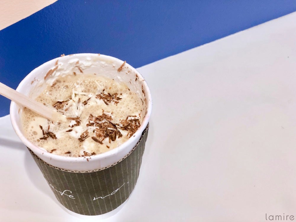 少しずつ溶かしながら飲むと、最初はほろ苦かったラテが少しずつ甘くなっていきます。見た目のインパクトに圧倒されていましたが、飲んでみると味も本格的でおいしい!このラテはここでしか味わえないですね。