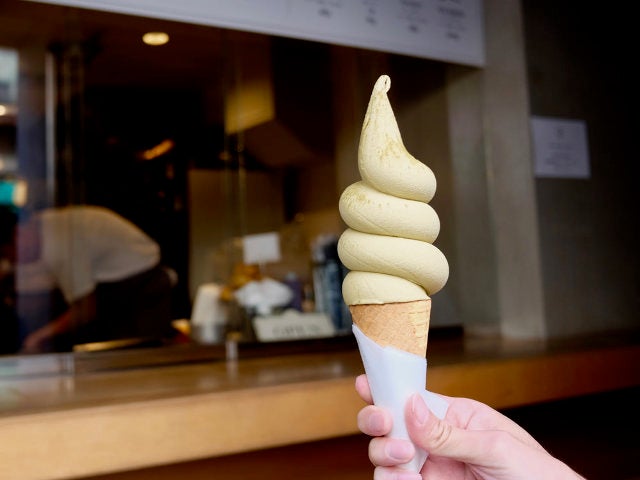 ウバ、抹茶、ほうじ茶の3種から味が選べ、ソフトクリームの上に粉砕した茶葉の粉がトッピングされている。口に運ぶ前から茶葉の風味がふわりと香り、冷たさのなかにしっかりと茶葉の味が感じられる。