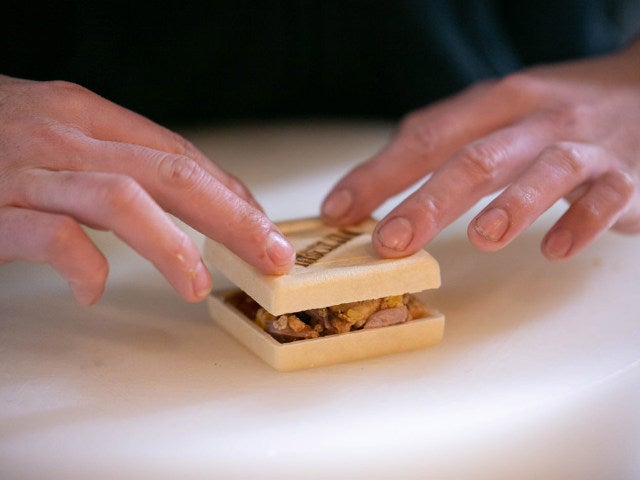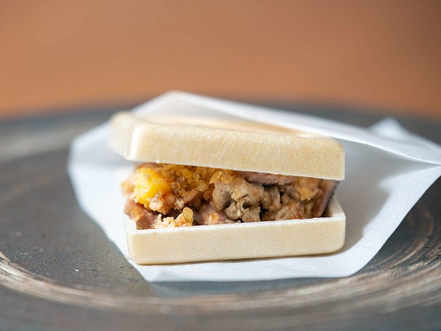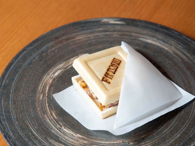 こちらは「パリパリの最中に、プラムソースで和えた鴨の胸肉、紹興酒でマリネしたフォワグラをクリーム状にしたものをサンドした「殷雷(インライ)」(写真上)。