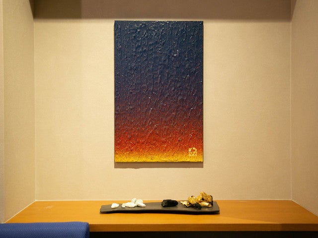 老舗での修業、そして異国の地での経験を経て、2018年8月27日に『エフドトシ』をオープンしたのは29歳のとき。地元・栃木県宇都宮の同級生で、吉田シェフと同じく独立したてのデザイナーに店舗のデザインを頼み、店内に飾るアート作品は同い年のアーティストに依頼した。