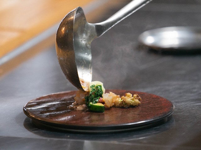 それゆえ、想像の泉も豊かだ。「料理するとき、まずは『お皿の風景』を考えるんです。最初に“解”の部分を決めると、=(イコール)の左側にどんなピースが足りていないかが見えてくるから、やるべきことが明白になるんです」。