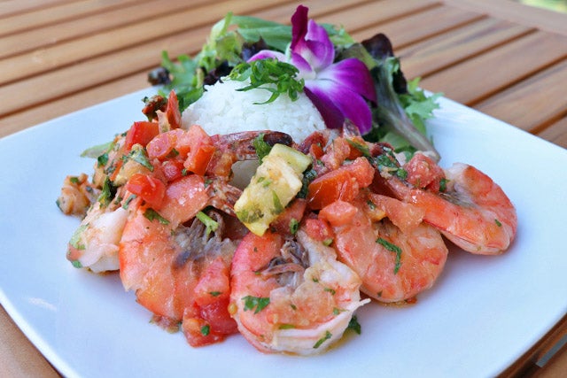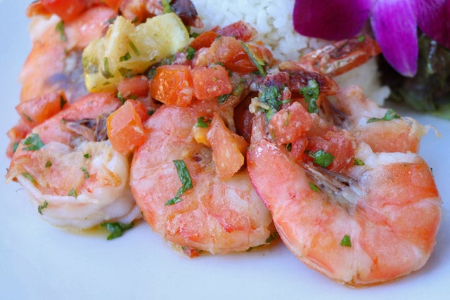 こちらもハワイで絶対に食べたいガーリックシュリンプ。ご飯とサラダが付いたノースショアのシュリンプトラック風なのがいいですね。