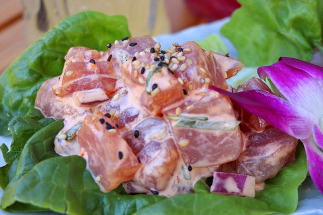 ハワイ近海で獲れたマグロを使ったスパイシーポケとお醤油で味付けしたポケはどちらも日本人好みのマイルドなテイスト。冷凍ものでは味わえないフレッシュなおいしさが、ぎゅぎゅ~っと詰まっています。