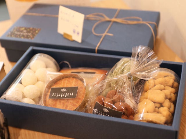ギフト用のボックスも用意されていて、お好みの焼き菓子を詰め合わせてオリジナルのギフトを作ることもできる。