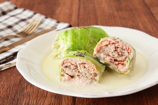 鮭入りの肉ダネで風味豊かに! 「鮭のクリームスープロールキャベツ」