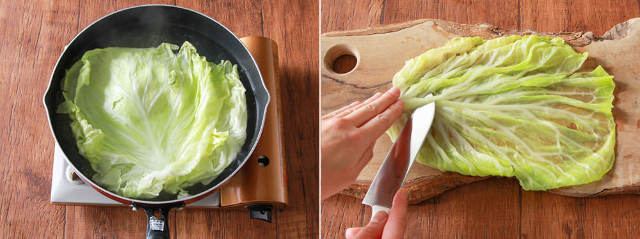 この巻き方をマスターすれば、崩れにくく美しいロールキャベツを作ることができる。