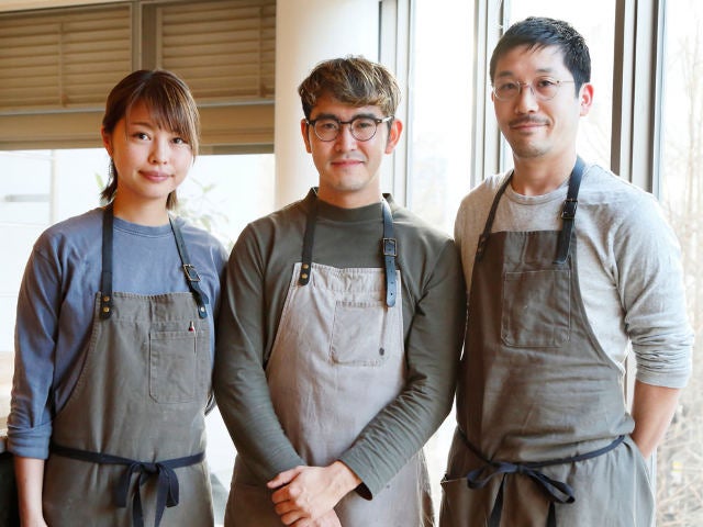 3人が織りなすやさしい空気の中でなら、旬の味覚やおいしいワインとのマリアージュも一層すてきなものになりそうだ(写真上・左から山口さん、榎さん、小池さん)。