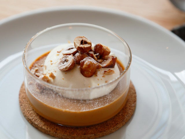 デザートの定番は、小池さんと榎さんがNYで出逢ったドルチェに惚れ込み、山口さんに再現してもらって完成させた「キャラメルプリン」(写真上)。サワークリームとバニラ、生クリームをブレンドした酸味のあるクリームをトッピングして、ヘーゼルナッツをキャラメリゼしたものをトッピングした愛らしいこのプリンのことは、榎さんら自身も「本家超え」と評すほどお気に入り。